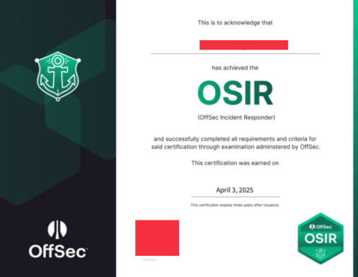 | Certification Name | Offsec OSIR IR-200 Practical Exam |
